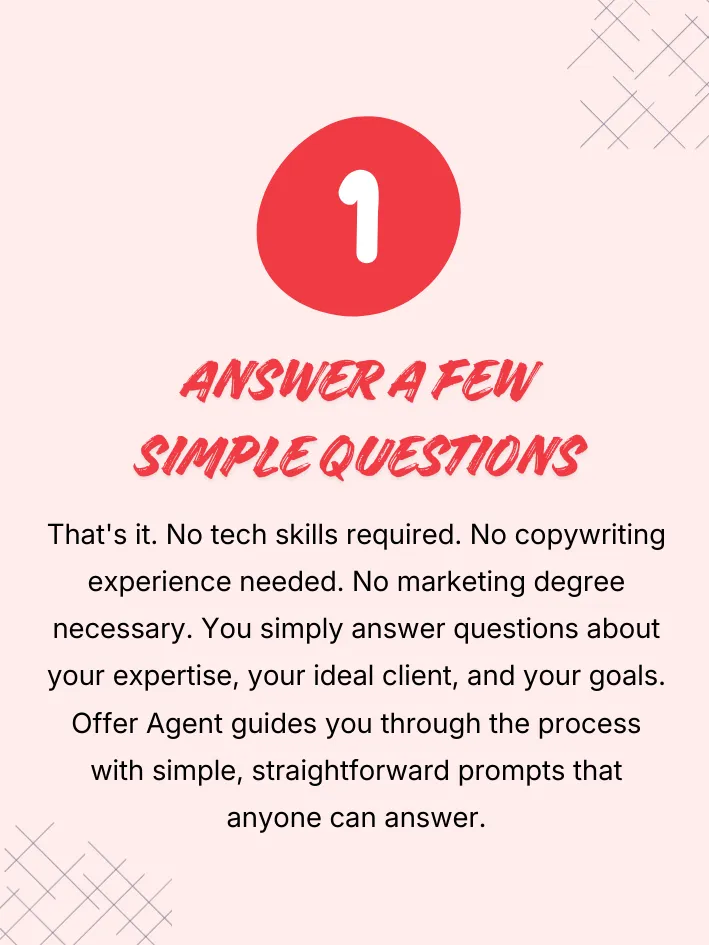 What happens first: You access Offer Agent, answer the guided questions, and receive your complete offer package.